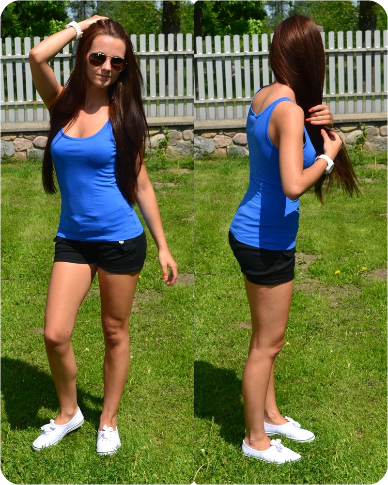 Top- h&m  Spodenki- nn (miejski sklepik)  Trampki- House  Zegarek- nn (miejski sklepik) Okulary- nn (miejski sklepik)